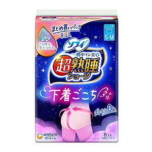 商品名 ユニ・チャーム ソフィ 超熟睡ショーツ S〜M 8コ入 商品説明 一晩中モレ安心、ぐっすり熟睡 ・ショーツ型ナプキン ・ズレモレ0へ ・最長12時間分の吸収力 サイズ S-M:ヒップ 82〜95cm...