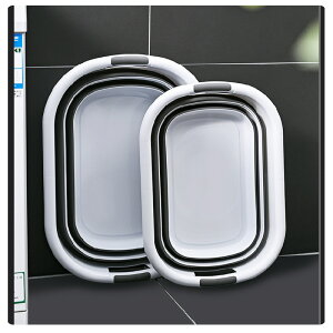 カラー:ブルー、グレー容量:約23L1. 水切り栓付き排水時は本体を傾ける必要がなく、すすぎや脱水がやりやすい。2. 取っ手運びやすくて熱くなりにくい。3. 底辺に滑り止め設計4. 使わない時はコンパクトに畳めて収納しやすい使用時の高さ