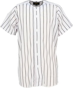 メジャーリーグで人気のストライプ柄で、フルオープンラグラン袖スタイルのユニフォームシャツ。メッシュ素材で通気性の良いユニフォームシャツです。素材:ポリエステル100%(ストライプメッシュII)機能:軽量、吸汗速乾用途:試合