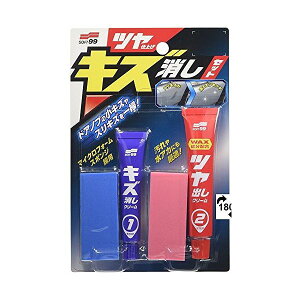 ソフト99 車用 補修 ツヤ仕上げ キズ消しセット 00286JANコード:4975759002864【セット内容】キズ取り:15g ツヤ出し:25g 専用スポンジ 2個◆ちょっとしたキズ、くすみや汚れの固着等...