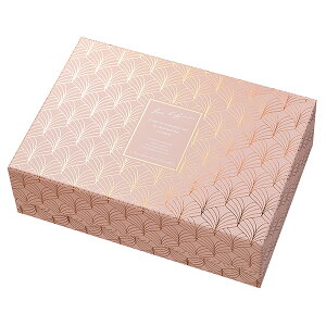 プレゼントを開けた瞬間を楽しめるピンクのギフト用貼箱(身ふた一体型)です。全面に施された箔押しがエレガント!箱の内面にも大理石デザインが入っており、ラッピング要らずで高級感バツグンのギフトが作れます。蓋がスタンドしてお
