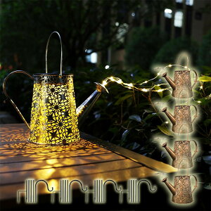 ●2つの柄を選べるじょうろ型ソーラーガーデンライト【ガーデンライト】お洒落な装飾ガーデンライト:じょうろが輝く星の流れを注いでいるかのよう。暖かい白色LEDが繊細な銅線に張られ、ピカピカと交互に点滅。ずっと見ていられるよう