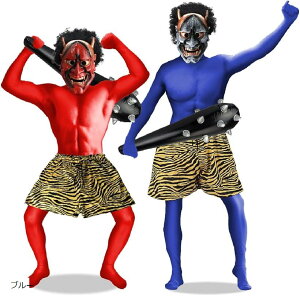 1xflx商品名肌見えゼロ 節分用衣装 鬼コスチューム 5点フルセット 全身タイツ ウィッグ付き お面 棍棒 虎柄パンツブランドmewinカラーブルーサイズ等Free Size子供から大人まで盛り上がること間違い...
