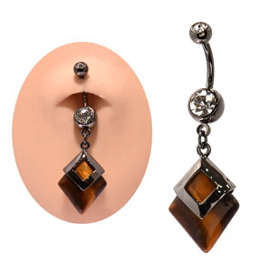四角形のスクエア型にカットした茶褐色の天然石タイガーアイ色の合成石のボディピアス。まるで天然石の虎目石のような風合いがボヘミアンなスタイルをアシストしてくれるボディーピアスです。ユニークで面白い四角の形状の石のボディ