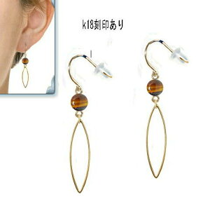 お勧め 18金イエローゴールド/YGK18掛け式フック使用(K18刻印あり)/国内産マーキス/フープ/合金/ゴールドトーン約6mmタイガーアイ/イエロー/加工あり/丸/パワーストーンサイズ:長さ約42...