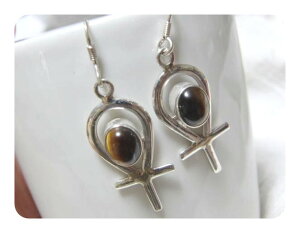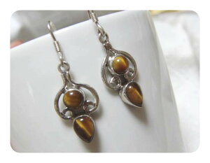 シルバー925のフックピアス。 タイガーアイを使ったエスニックピアスです サンダルっぽいデザイン。 角度によって、キャッツアイ効果の光が浮かぶ人気の天然石 金運アップのパワース...