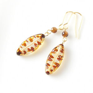 包装 簡易包装 サイズ ピアスホールからの長さ:約4.2cm 素材 チェコガラス約19×8mm、タイガーアイ約3mm、合成金属 スタッフコメント クリアガラスにブラウンの刻み模様がアクセントに入ったリ...