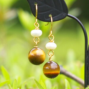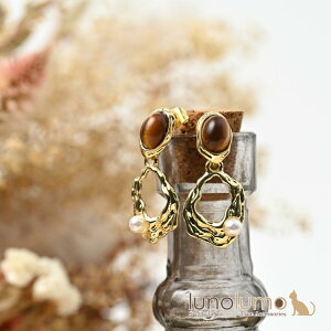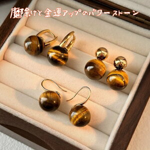 金属アレルギー対応(チタン 14kgf 樹脂)オプション変更可能 イヤリングオプション変更可能 ゴールドカラー タイガーアイ 2022年寅年 天然石 天然素材