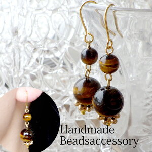 耳元でキラキラ、しゃらしゃら揺れるカットビーズのピアス。気軽に身に付けられる、女の子度UPの可愛いピアス♪♪【タイガーアイ】邪悪な力を跳ね返し、洞察力や決断力を養い物事を成功へと導き仕事運、金運をよくするといわれています...