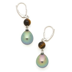 マジョリカパールのグレーティアードロップXタイガーアイ ドロップピアス。グレーのティアードロップにタイガーアイが加わった、大人感覚のカラーコンビに仕上がったドロップピアス。普段使いからソーシャルシーン