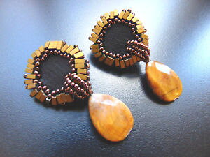 edel tigerauge ,perle, leder,von ctia levyタイガーアイパールゴールドカラーピアス ピアス