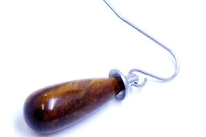 雫型の合成石の綺麗な茶色いブラウンのしま模様のタイガーアイをセットした天然石風ステンレスピアス。 涙型のイミテーションストーンですが虎目石がおしゃれなスタイルに決まるの天然石ステンレスピアス。 メンズでもレディースでも