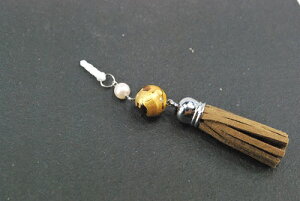 14mmタイガーアイ白虎金彫りとアコヤ真珠を組んだスマホピアスです。ブラウン色のタッセル。 タッセルは他の色でも希望により組み合わせられます。ご希望の方はお問い合わせください。 合計1万円以上で送料無料...