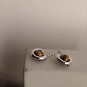 文芸レトロ・形状: 幾何学・デザイン要素: リング・素材: 銅・針素材: S925銀・石材: タイガーアイ・加工: 電鍍・対象: 女性