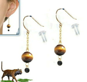 新作トライ やや長めチェーンの下に 独特の縞模様がトラの目のように輝くタイガーアイと漆黒なブラックオニキスをあしらったロングピアス身のこなしとともに揺れて ほどよいゴージャス感とキュートな雰囲気を演出しています国内