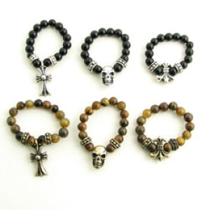 オニキス・タイガーアイのストーンにスカル・ユリ・クロスのチャームが付いたサイズフリーにリング 石は人工石ですが本物ソックリの柄と重量感です サイズフリーなので、男女ともにつけやすい(ゴムにストーンが付いています)...