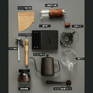 手挽きコーヒーミルセット:650 mlコーヒーポット*1、500 ml雲ポット*1、電子秤*1、ろ過カップ*1、手動豆ひき機*1、密封貯蔵瓶*1、コーヒー温度計*1、コーヒー豆計量スプーン*1、クリーニングブラシ*1...