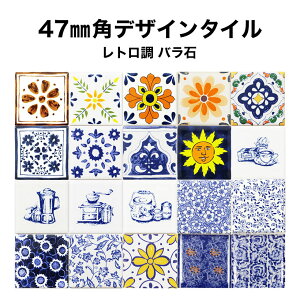 47mm角デザインタイル レトロ調。1250度で焼成したタイルに転写紙を張り800度で焼成したレトロ調の柄タイルです。販売単位 1枚。サイズ/ピース (約)47mm。