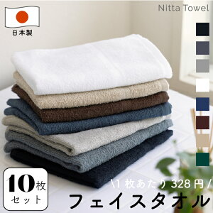 フェイスタオル お得 10枚セット 薄手(180匁) ホワイト、ブラック、ライトグレー、ブラウン、ネイビー、ベージュ、チャコール、グリーン パイル部分に糊を使わない無糊パイル=ムコパイル