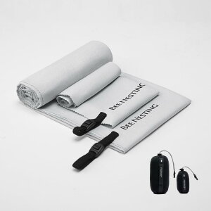 BeeNesting 速乾タオル スポーツタオル マイクロファイバータオル 軽量 吸水 コンパクト 収納袋付き 旅行 水泳 アウトドア 登山用 2枚セット (S+M, グレー)【超軽量&コンパクト収納...