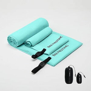 スタイル:スポーツ◆商品名:BeeNesting 超軽量 速乾タオル 特大判&小さいセット マイクロファイバー スポーツタオル コンパクトに収納可能なポケット付き バックパッキング 旅行 登山 ビーチ ジム 水泳 ヨガ用 (ブルー...