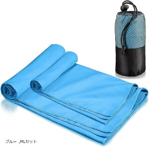 ting 超軽量 速乾タオル2枚セット 超吸水 抗菌 防臭 スポーツタオル く折りたためる コンパクト 収納袋付き旅行タオル 水泳 アウトドア 登山用 マイクロファイバータオルセット(S+XL、ブルー)コンパクト