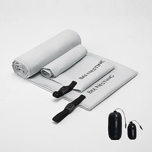 ◆商品名:BeeNesting 超軽量 速乾タオル2枚セット 超吸水 抗菌 防臭 スポーツタオル く折りたためる コンパクト 収納袋付き旅行タオル 水泳 アウトドア 登山用 マイクロファイバータオルセット (S+XL、グレー)コンパク...