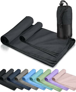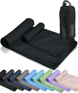 BeeNesting 超軽量 速乾タオル 特大判&小さいセット マイクロファイバー スポーツタオル コンパクトに収納可能なポケット付き バックパッキング 旅行 登山 ビーチ ジム 水泳 ヨガ用 (ブラック...