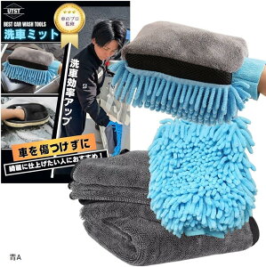 車用ミット 吸水タオル2枚セット 洗車グローブ マイクロファイバー 洗車タオル 洗車グッズブランドUTSTカラー青Aサイズ等free両手で洗える洗車用ミット左右兼用セットと吸水タオル2...