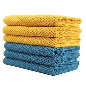 YUANHEN キッチンタオル 台ふきん マイクロファイバークロス キッチンクロス 厚手 雑巾 - 強力吸水 速乾 掃除用品 拭きガラス 窓鏡 台拭き 約30*30cm 3枚 1、素材仕様:キッチンタオル.ワッフル生地...