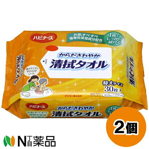 4902508106597 「ハビナース からださわやか 清拭タオル 30枚入」は、1枚で全身の汚れを落とせるスキンケアウェットタオルです。1枚が新聞紙1/2面(400*300mm)と...