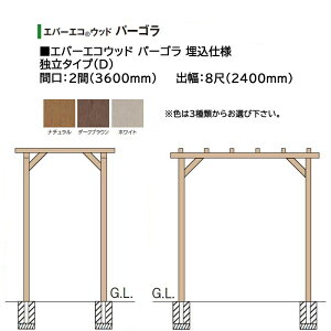 メーカー直送品のため代引き決済はできません。 北海道・沖縄・離島への送料はお見積りになります。 ■エバーエコウッド パーゴラ 埋込仕様 独立タイプ(D) 間口:2間(3600mm) 出幅:8尺(2400mm) 色は以下の3色からお選び...
