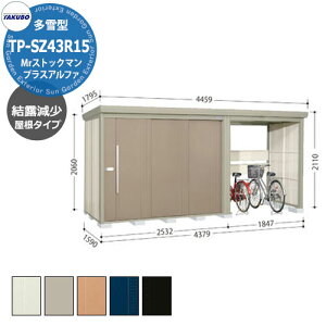 中・大型物置 タクボ Mr.ストックマン プラスアルファ TP-SZ43R15 物置に駐輪スペースをプラスしました。 販売条件 ◆詳しくはこちらをご確認ください カラー ・Mムーンホワイト ・Bカーボンブラウン...