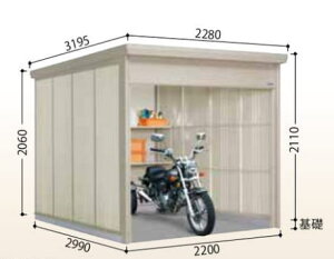仕様図・梱包明細・組立説明書・基礎図 はこちら >> 屋根寸法間口3312×奥行2495×高2570mm土間寸法間口3232×奥行2290mm内部寸法間口3176×奥行2120mm開口部寸法間口1772×高1850mm床面積7.4平...