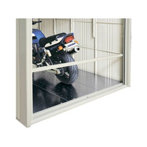 バイクシャッターマン BS-2529 組立+転倒予防措置(土)付き。耐食性に優れた特殊亜鉛鋼板に高級焼付塗装。外部寸法:間口2532×奥行2990×高さ2570mm。開口部寸法:間口2318×高さ2045mm。内部寸法:間口2476×...