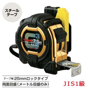 【品名】剛厚Gステン 25mm幅5.0m セフマグ 【品番】GASFGSLM25-50 【目盛仕様】メートル目盛、JIS1級、両面目盛 【テープ幅】25mm 【テープ長さ】5m 【テープ】両面剛厚イエローテープ 【表示】ヨンゴーゴーピ...