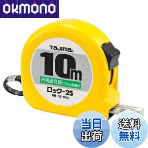 DIY 工具 作業用 タジマ tajima 【特長】テープを固定できる、ロックタイプ。0点補正移動爪。ショックアブソーバー付。 【仕様】目盛仕様:メートル目盛、JIS1級。テープ幅:25mm。テープ長さ:10m...