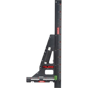 【商品詳細】 ●丸鋸ピッチ、ボードの割付が簡単にできるボード割付マーク付横目盛です。●簡易的に角度や勾配を確認できる勾配目盛です。●仕舞切りに便利な角度微調整機構を搭載しています。●軽くて丈夫な高精度アルミを採用しています。●底面に...