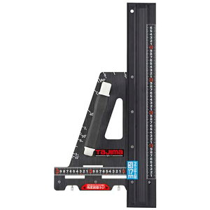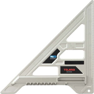 特長:丸鋸ピッチ、ボードの割付が簡単にできるボード割付マーク付横目盛です。簡易的に角度や勾配を確認できる勾配目盛です。仕舞切りに便利な角度微調整機構を搭載しています。軽くて丈夫な高精度アルミを採用しています。底面に滑