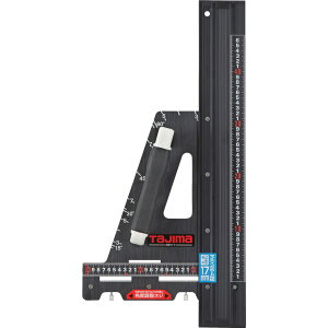 商品説明(製品の特徴)●丸鋸ピッチ、ボードの割付が簡単にできるボード割付マーク付横目盛です。●簡易的に角度や勾配を確認できる勾配目盛です。●仕舞切りに便利な角度微調整機構を搭載しています。●軽くて丈夫な高精度アルミを採
