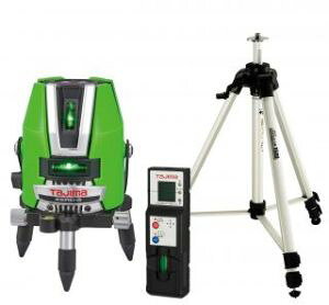 お求めやすいグリーンレーザー 鮮視度300のくっきりライン 縦・横・片矩ライン 本体電源:単3乾電池 付属品:乾電池/専用ケース/受光器/三脚