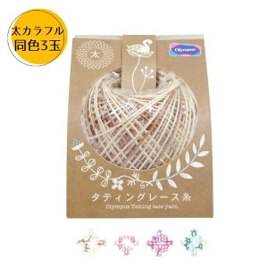 ☆商品詳細☆ 3玉同色同ロット 品質構成: 綿100% 長さ : 約40m/玉 ※ツノ無しシャトルをご使用の際は6号〜8号レース針の使用を推奨。 ※カラフルはショートピッチの段染めです。 レース糸の老舗オリムパスがお送りするタティング...