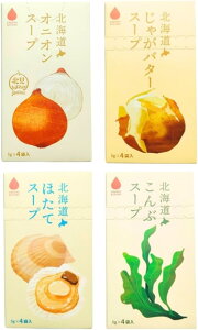 グリーンズ北見 北海道 スープ 4種アソート(オニオンスープ、じゃがバタースープ、ほたてスープ、こんぶスープ)各4袋入 即席スープ 個包装 お土産 機内食 玉ねぎ たまねぎ じゃがいも ホタテ 帆立 昆布...