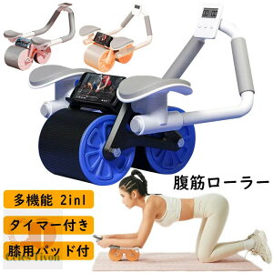 自動リバウンド 腹筋ローラー プランクローラー 携帯スタンド付き 2輪 静音 タイマー付き 多機能2IN1 肘サポート トレーニング器具 ダイエット器具