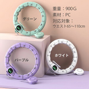 【落ちないスマートフラフープ 】【ウエスト65~110cm調整可能 】スマートフラフープをまわすことにより、腰痛防止や骨盤矯正マッサージなどの効果があり、基礎代謝を高めてくれます。パープル、ホワイトと...