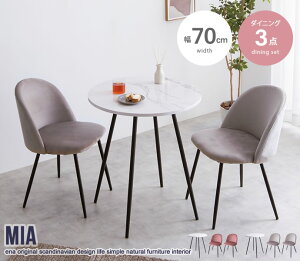高級感と洗練されたデザインが魅力の『Mia(ミア)』シリーズ。 こちらは、大理石柄の正方形ダイニングテーブルと、肌触りの良いベロアチェア2脚がセットになったお得な3点セット。 ホワイト×ブラックのモノトーンカラーで、モダンなお