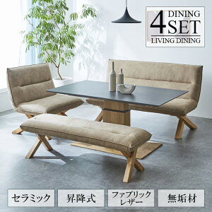 商品について ■セット内容 伸長式テーブル×1台。 1人掛けチェア×1脚 2人掛けチェア×1脚 140cm幅ベンチ×1脚 ■商品の特徴 温もりあふれる木目と異素材を組み合わせた上品でモダンなダイニングシリーズ...
