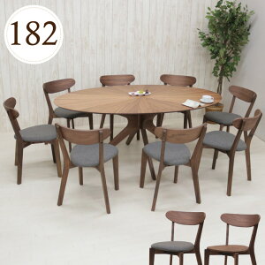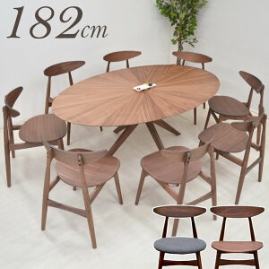 テーブル 組立品 幅1820mm×奥行1100mm×高さ720mm。材質:ウォールナット突板/MDF/ウォールナット材(光線張り加工)。チェア 完成品 幅510mm×奥行き560mm×高さ755mm。板座:座面高435mm ファブリッ...