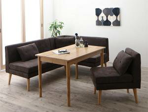 6b[関連タグ] 組立付き ダイニングソファーセット 4人用 ダイニングセット 北欧 ネイビー 茶 グレー 4点セット(テーブル+2P+右アーム+1P) 食卓テーブルセット 115cm ブラウン 4人掛け...
