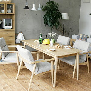 商品詳細天然木とファブリックの組み合わせが温かみと優しさを感じるソファーダイニング、COSYシリーズより幅160cmのダイニングテーブルと1人掛けソファー4脚の5点セット。落ち着いた色合いのアースカラーファブリック生地に、天然木のア